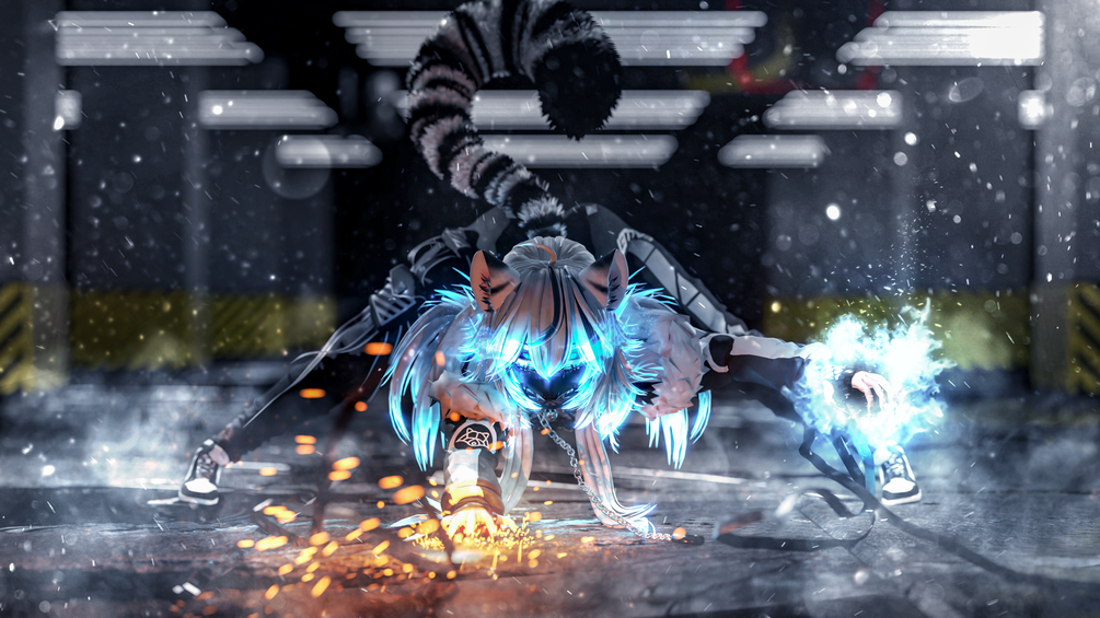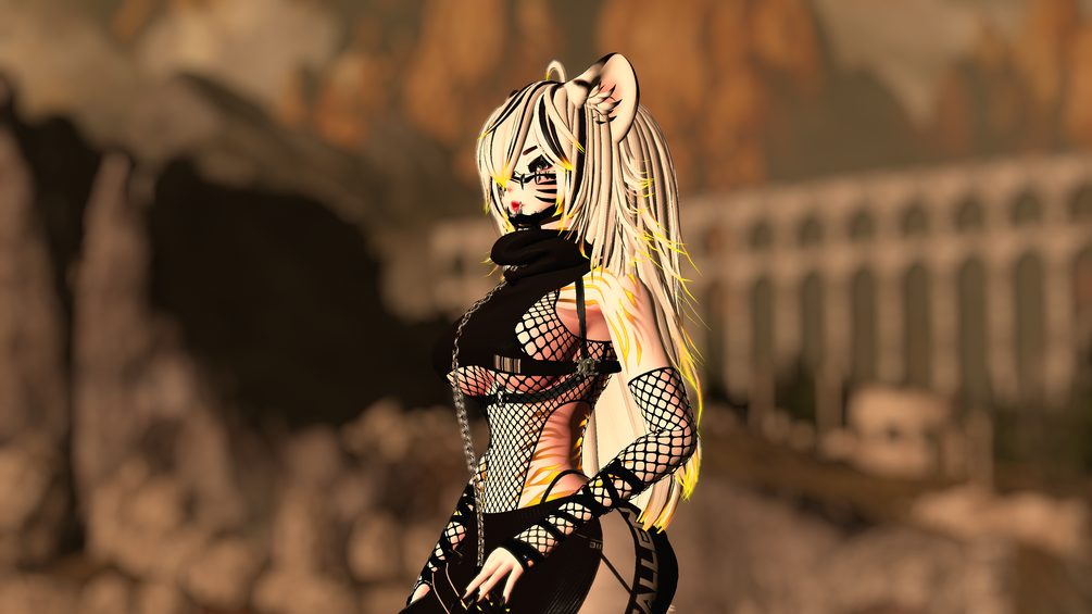 Head - Cicieaaa#7777, Body, Stockings - zinpia, Hair (Ponytail and Long hair), [Sirai DLC] outfit: flexuh, Ponytail 2: nessyy., Ears,Tail - cupkake ,Bodysuit - cupkake ,Leggings ,Face&Body Texture - ying.vr/yang.vr ,Eye Textures, GodPants - godfall, Pants - DARCY.FBX, Shoes, Choker, Jaws - Starkotic#9464, Nails, CropTop, Shorts - ничто#6666, Particles - zepwlert#0001, arm wraps - l.owo,