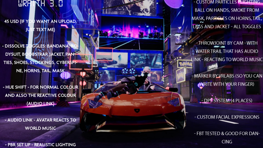 - custom particles - Lighting Ball on hands, smoke from mask, particles on horns, tail, legs and jacket - all toggles