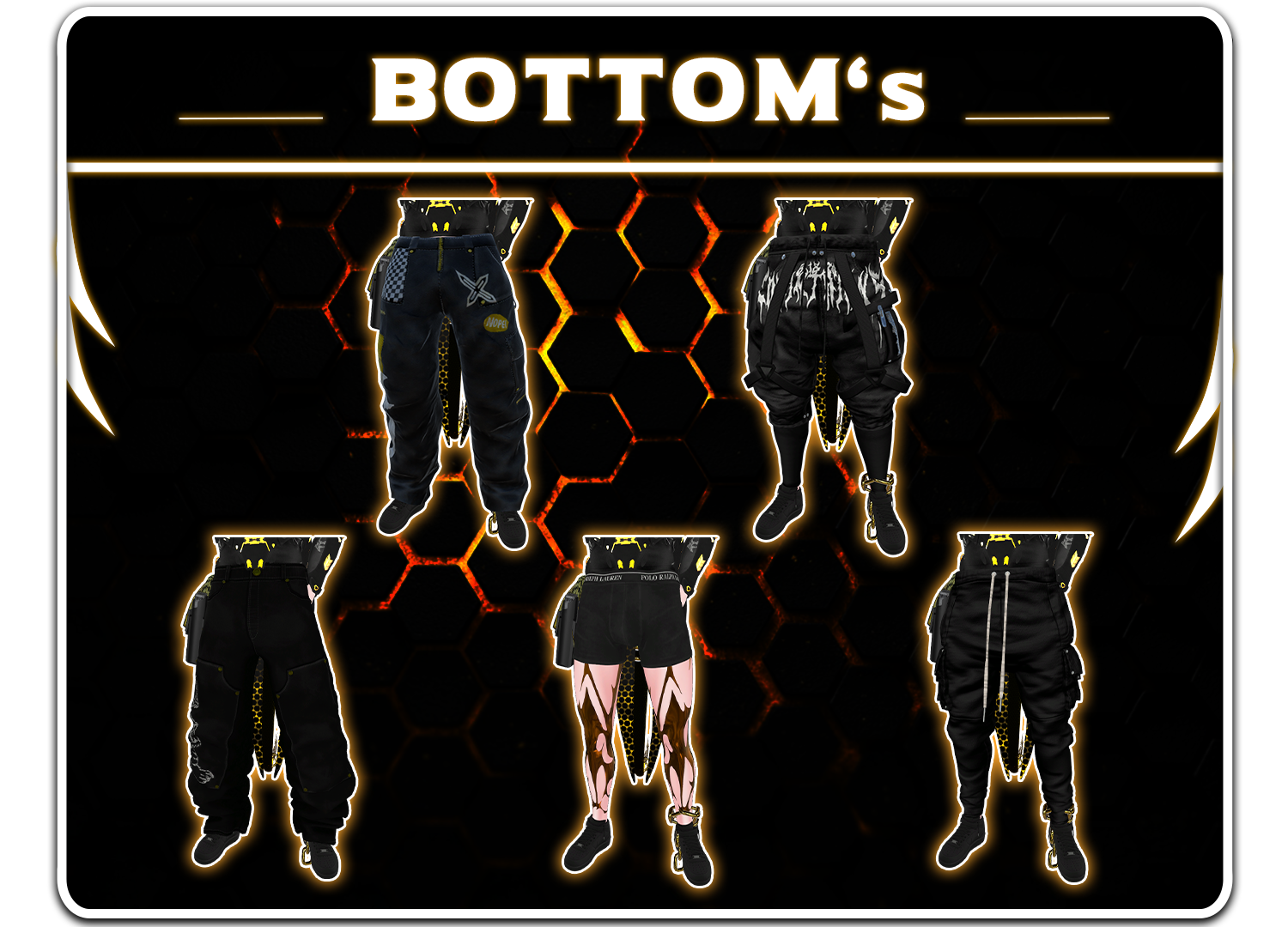 - Inner: Compression Longsleeve, Compression Shirt, Jumper, Rolled Tshirt, Tanktop, Belt, Chain Wrist